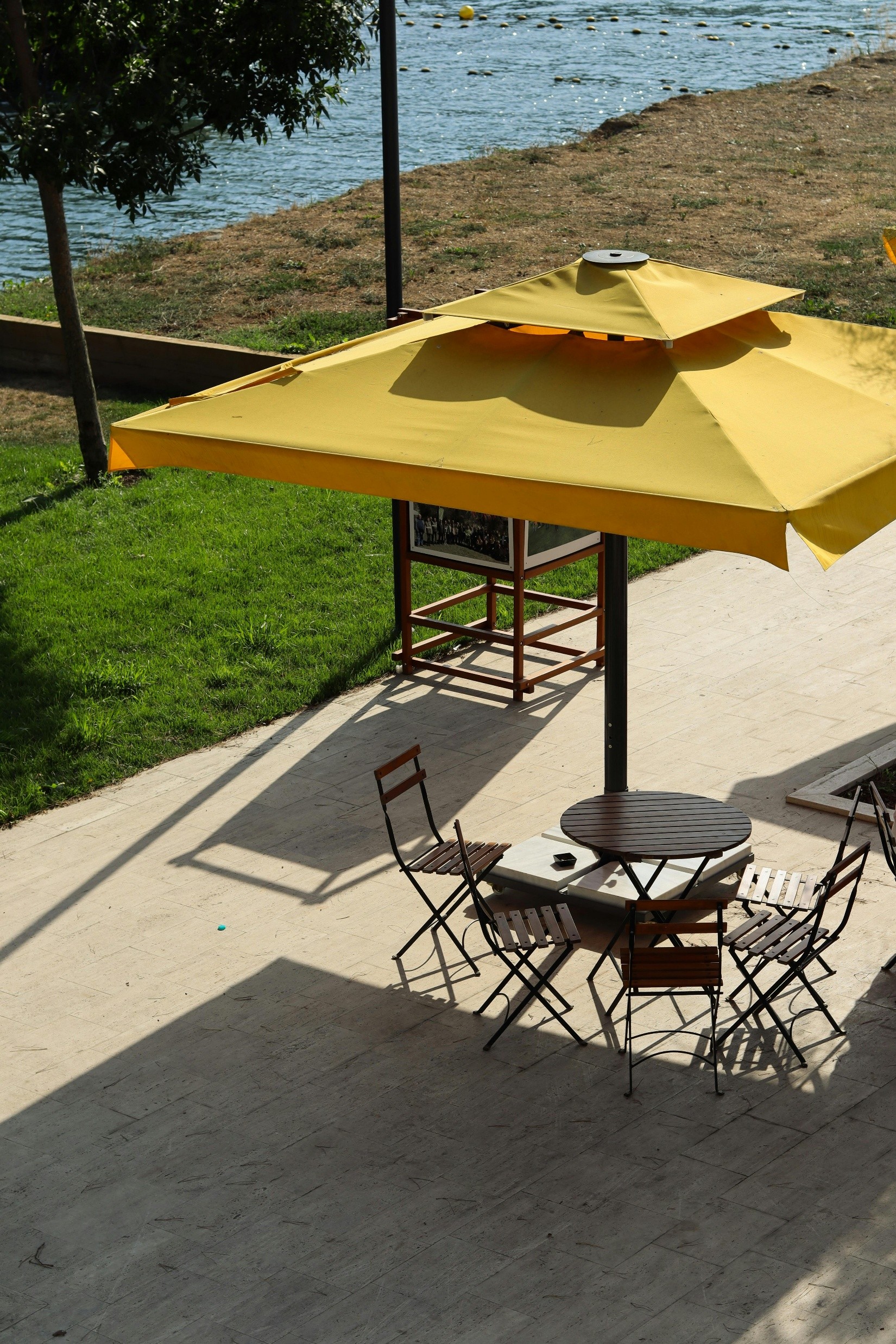 9FT Solar LED Patio Umbrella with 32 Lights and Tilt Crank Yellow